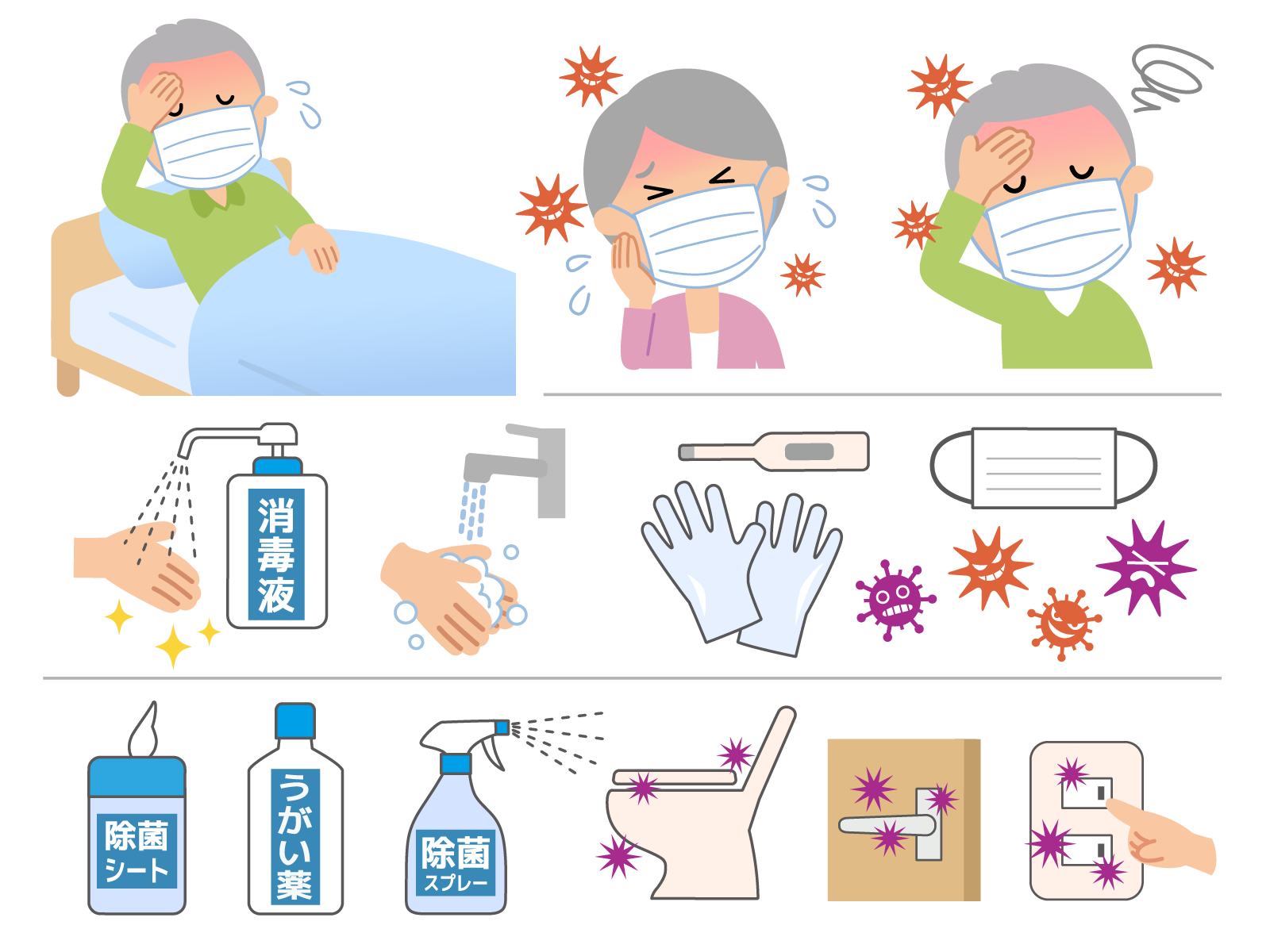 風邪の症状がある場合や感染リスクが高い場面で、マスクの着用は感染拡大を防ぐ重要な手段です。他人を守るためにもマスクを着用しましょう。